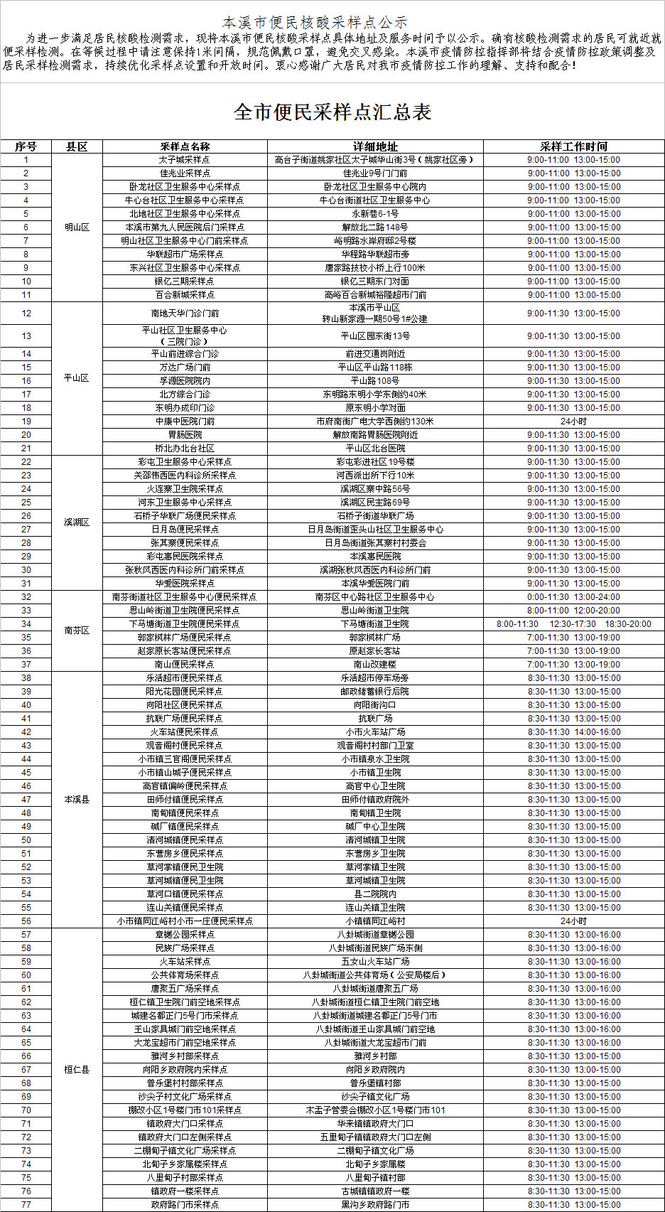 请有就医需求的市民,提前到本溪市便民核酸采样点,就近就便采样检测。