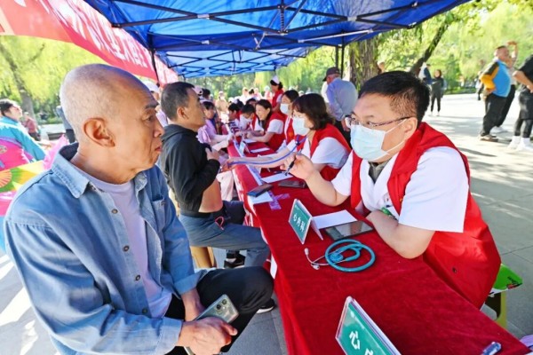 义诊中,机关第一党支部、机关第二党支部、内科第二党支部及药械党支部的党员志愿者还为现场百姓免费测量血压、血糖130余人次。